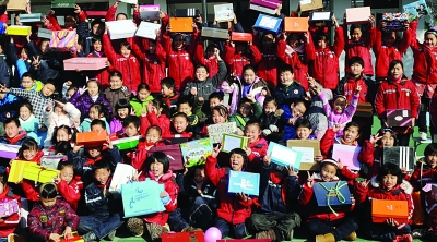 ????“鞋盒禮物”,在全世界100多個(gè)國(guó)家都舉辦過,本著互動(dòng)、打破雙方隔閡的理念,倡導(dǎo)富裕家庭的孩子們自愿捐出自己的零用錢,和爸爸媽媽們一起為需要的孩子們準(zhǔn)備禮物,并用鞋盒包裝起來送給困難家庭的孩子。在七橋小學(xué)的操場(chǎng)上,高高的一摞精心打扮過的“鞋盒禮物”堆在孩子們面前,有的還用水彩筆歪歪扭扭地寫著贈(zèng)送祝語(yǔ)。這些都是南京市40多所中小學(xué)孩子準(zhǔn)備的一部分。