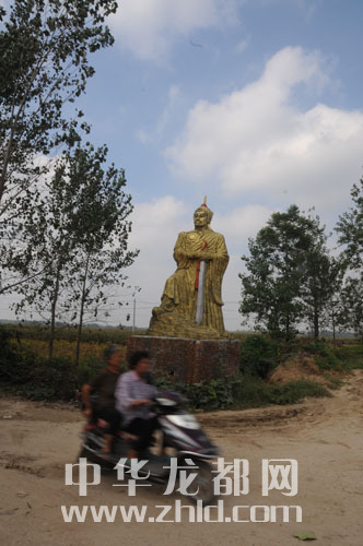 ????宜路鎮(zhèn)岳莊行政村的中心位置有一座醒目的岳飛塑像,近6米高,是今年3月建成的,出資修建岳飛塑像的是村里一所私立學校的校長岳恒飛。