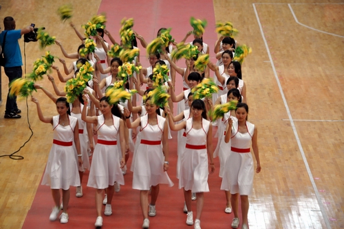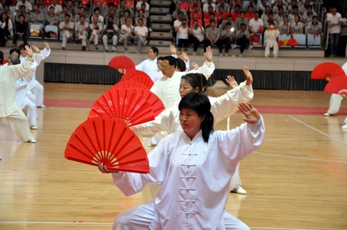 ????開幕式后,由周口市教育局、周口市公路局、周口市直機(jī)關(guān)事務(wù)管理局、周口市直幼兒園四個(gè)參賽單位共同表演的第九套廣播體操拉開了文體表演的序幕。周口師范學(xué)院推薦的青春健美舞,周口太極協(xié)會(huì)的太極刀、太極劍、太極扇表演,周口市秧歌協(xié)會(huì)推薦的中老年健美舞和周口三通武校帶來(lái)的精彩武術(shù)表演等全民健身項(xiàng)目展演。