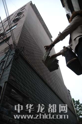 ????在家屬院門口值班的張老太說,水泥塊是6月15日下午開始脫落的,當(dāng)時險些砸到一名路過的小女孩?!斑@也沒個警示標志,行人走在下面很容易被砸傷?!庇浾吣闷鹨粔K脫落的水泥板,發(fā)現(xiàn)很重。“樓頂至地面的距離至少20米,一旦砸到行人后果不堪設(shè)想?!币晃痪用裾f。