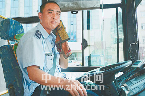 趁乘客上下車的間隙,3路公交車司機張師傅趕緊擦把汗。