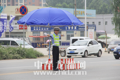 “天再熱,我們也要把交通指揮好。”7月22日12時30分,在中州大道寧洛高速路口附近,正在指揮交通的交警劉保兵對記者說。記者看到,汗水已經(jīng)浸透了他的衣背,藍色的制服由淺變深。