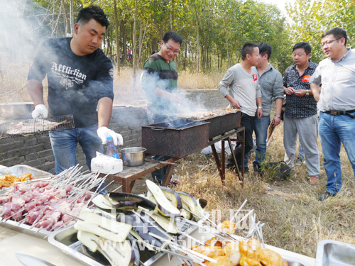 12時(shí)許,微友來到周口文昌生態(tài)園?;顒?dòng)贊助方——味好西餐咖啡商貿(mào)有限公司、戶外主題餐廳、人民公社大食堂早已準(zhǔn)備好肉類、蔬菜、水果、飲料等等,一場(chǎng)燒烤“盛裝登場(chǎng)”。