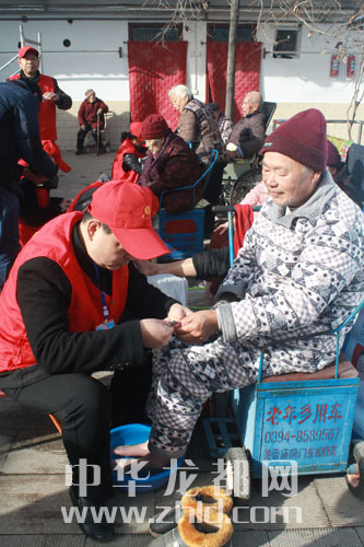 12月2日,十多名來自周口傳德公益愛心QQ群的志愿者來到周口中心城區(qū)建設(shè)東路附近一敬老院,為這里的老人送來蛋糕、牛奶等慰問品,并為老人理發(fā)、洗腳。