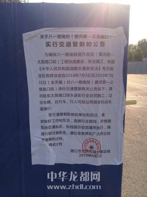 ????當日下午,周口晚報記者在八一大道南段看到,原火車站鐵道口至太昊路路段的雙向機動車道已全線封閉,“過往車輛請繞行”的交通警示牌也已豎立在路口,幾輛施工車輛正在現(xiàn)場緊張忙碌地備料、開挖路面。