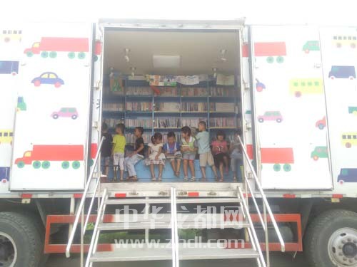 ????本報訊 8月22日,一輛帶著5000多冊兒童讀物的流動圖書車,從北京來到鄲城縣秋渠鄉(xiāng)希望小學。該校300多名留守兒童有的上車讀書,有的簽字借閱,都特別高興(如圖)。