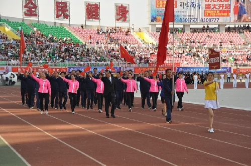 ????當(dāng)日16時(shí),國旗方陣、會(huì)旗方陣、彩旗隊(duì)、裁判員、運(yùn)動(dòng)員依次入場,一個(gè)個(gè)意氣風(fēng)發(fā)的團(tuán)隊(duì)引來現(xiàn)場觀眾陣陣掌聲和歡呼聲:周口川匯區(qū)代表團(tuán)首先入場,他們步伐矯健,英姿勃發(fā);市委辦公室代表團(tuán)精神抖擻,意氣風(fēng)發(fā);市委宣傳部代表團(tuán)邁著矯健的步伐走向主席臺(tái)……