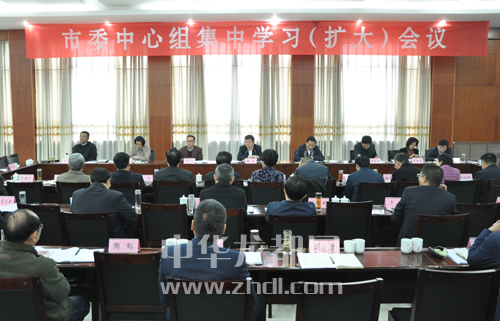 市委中心組集中學(xué)習(xí)(擴(kuò)大)會議現(xiàn)場。記者 王映 攝