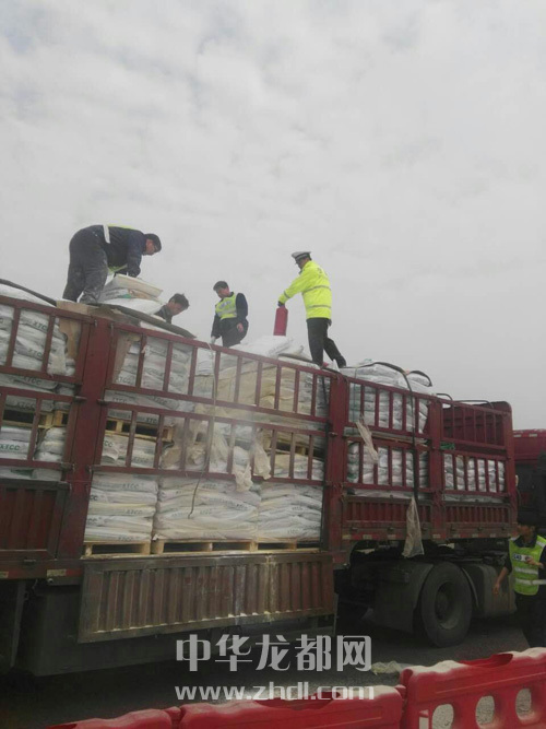 ????接到求助后,4位高速交警迅速趕往現(xiàn)場,并在第一時間把警情匯報給高速指揮中心。隨后,中隊(duì)長杜金濤帶領(lǐng)所有執(zhí)勤民警全員參與救援。他們一邊設(shè)置警示區(qū)域,疏散圍觀群眾,一邊通知收費(fèi)站和高速路政人員暫時禁止車輛駛?cè)?,防止次生事故發(fā)生。