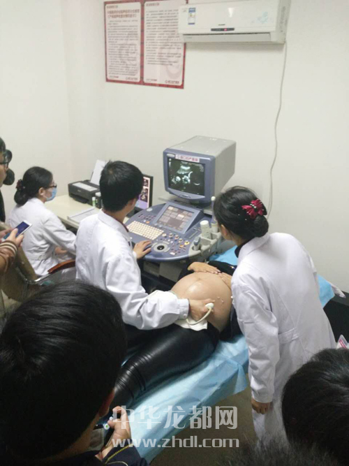 ????當(dāng)日,周口晚報記者在周口中心城區(qū)漢陽南路一家婦產(chǎn)醫(yī)院見到了34歲的孕婦劉女士。她挺著大肚子躺在彩超機旁,其丈夫和醫(yī)護人員站在身邊。當(dāng)經(jīng)常幫她檢查的女醫(yī)生對著胎兒問“寶寶,咱們做幾道題好嗎”時,可以看到孕婦肚子出現(xiàn)兩次跳動,這被大家解讀為“好的”。隨后,女醫(yī)生問“3加2等于幾”,肚子連續(xù)跳動5下。醫(yī)生再問“9除以3等于幾”時,肚子連續(xù)跳動3下。