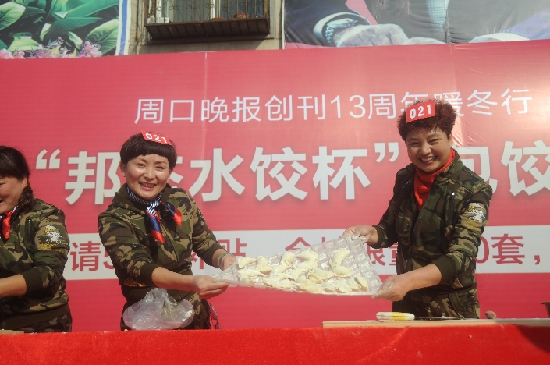 ????12月4日,周口晚報(bào)創(chuàng)刊13周年暖冬行大型公益活動——包餃子大賽啟動第一場分站賽,69組138名選手激烈角逐后,6組選手獲得分站賽一、二、三等獎(jiǎng)。晚報(bào)記者 朱海龍 攝