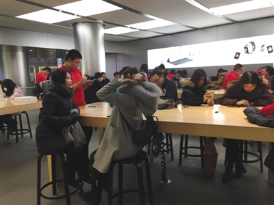 ????12月11日,蘋果王府井直營店售后服務(wù)等待區(qū)。 實習(xí)生 孫亞慧 攝