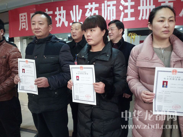 ????????本報訊 以后,市民辦理《執(zhí)業(yè)藥師注冊證》再不用去鄭州了,在周口就可以辦理。1月19日,在周口市行政服務大廳,我市舉行周口市執(zhí)業(yè)藥師注冊首發(fā)儀式,第一批9人申辦成功,這標志著我市執(zhí)業(yè)藥師注冊工作正式啟動。