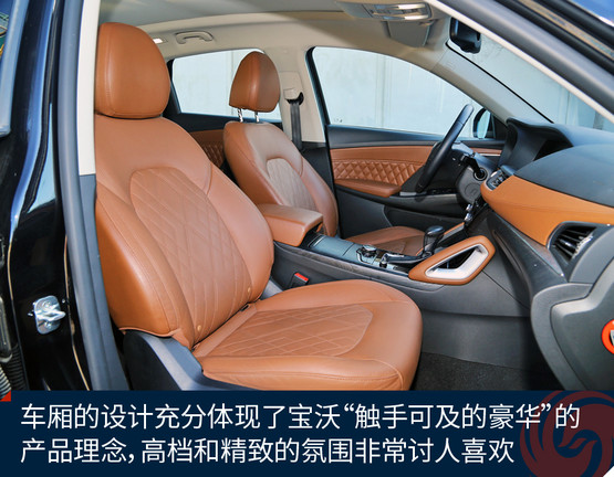 除了科技配置領先,寶沃BX7的車廂氛圍也讓人切實感受到這個品牌的誠意:我們試駕的四驅旗艦版車廂內(nèi)大量使用的皮革覆蓋件,并且采用漂亮的菱形縫線花紋點綴起來,這是賓利那個級別的頂級豪車慣用的裝飾手法;儀表臺、車門上沿的注塑材料都是很柔軟順手,特別是考慮到這款車尚不到25萬元的售價,寶沃的確兌現(xiàn)了他們所承諾的“觸手可及的豪華”。