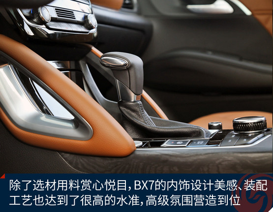 BX7的隔音材料總體夠足料,光在車門上就鋪設了兩個整圈+窗框上多半圈的密封隔音膠條,在這一價位的車型里絕對厚道。底盤的厚重感剛才提到了,高速行駛時無論風噪還是輪胎噪音,抑或發(fā)動機噪音都挺有節(jié)制的,稍微來點音樂就能掩蓋掉,因此這個車跑高速公路是讓人心情愉悅的,車內(nèi)安靜,而且非常平穩(wěn)。