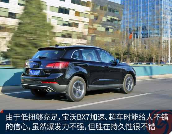動力方面寶沃BX7擁有一臺2.0T渦輪增壓直噴發(fā)動機,目前在售的均為高功率版本,擁有165千瓦的最大功率和300牛頓·米的峰值扭矩,這臺2.0T發(fā)動機是寶沃聯(lián)合德國FEV公司共同研發(fā),最大功率數(shù)據(jù)可觀,但峰值扭矩因為變速器能承受最大扭矩的限制被設定得略微保守,可見這還并非這臺發(fā)動機的全部潛力。令人欣慰的是,這臺2.0T發(fā)動機峰值扭矩在1500rpm即可輸出,這個優(yōu)點讓它在低轉速區(qū)即可有充沛的牽引力,駕駛起來顯得更加輕松,超車的時候信心十足。