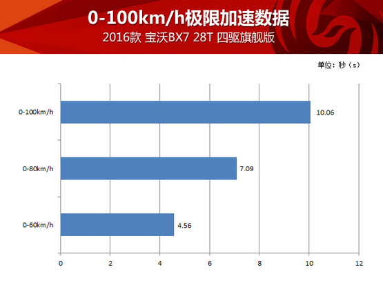 由于有四驅系統(tǒng)保障,寶沃BX7四驅版車型在全力加速起步瞬間非常平穩(wěn),6AT變速器換擋還是平穩(wěn)優(yōu)先,所以全力加速時升檔也沒有太明顯的頓挫、動力中斷或者不平順,整個過程很舒服,而10秒出頭的測試成績對于這臺2.0T動力的中型SUV也很不錯,請別忘了因為與變速器的匹配,這臺2.0T發(fā)動機的扭矩被限制在300牛頓·米,也就是說這臺“高功率”發(fā)動機其實并沒使出全力,我們完全有理由相信解除封印后它理應跑得更快。