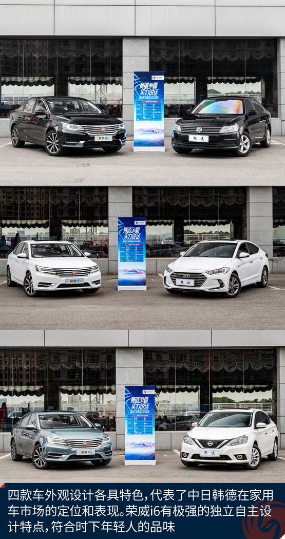 鳳凰汽車·搶先試駕?榮威i6可以說(shuō)打響了互聯(lián)網(wǎng)家轎的第一槍,它是繼RX5之后,榮威旗下的第二款重量級(jí)產(chǎn)品,延續(xù)了榮威RX5家族律動(dòng)美學(xué)的優(yōu)良基因。上市十天訂單便突破萬(wàn)輛大關(guān),是一款非常有潛力挑戰(zhàn)合資競(jìng)品的車型。但是光說(shuō)不練,假把勢(shì)。今天我們就在江蘇萬(wàn)馳的賽道場(chǎng)地內(nèi),特意選取了同級(jí)合資老炮軒逸16款1.6LXV CVT智享版、朗逸17款1.6L自動(dòng)舒適版、領(lǐng)動(dòng)?16款 1.4T 雙離合炫動(dòng)?精英型,和榮威i6 20T互聯(lián)網(wǎng)智尊版做個(gè)對(duì)比,看看這些銷量過(guò)萬(wàn)的合資家轎與新晉的小鮮肉榮威i6到底誰(shuí)更勝一籌?