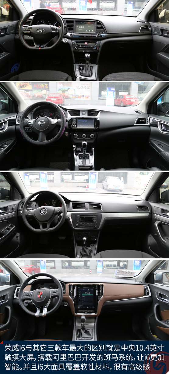 榮威i6內(nèi)飾軟包比例達(dá)到80%,能摸到的地方幾乎都采用了軟性材料,舒適溫馨的車內(nèi)氛圍也是家庭用戶非常看重的。榮威i6內(nèi)飾最大亮點(diǎn)在于10.4英寸的中控屏和和7英寸液晶儀表盤,讓科技感和豪華感超越了另外三款合資車型。相比榮威i6來(lái)說(shuō),它們的內(nèi)飾過(guò)于老套了。同樣i6的做工也絲毫沒(méi)有遜色于對(duì)手,在內(nèi)飾有機(jī)物揮發(fā)指標(biāo)上遠(yuǎn)低于國(guó)家車內(nèi)空氣質(zhì)量標(biāo)準(zhǔn)水平。