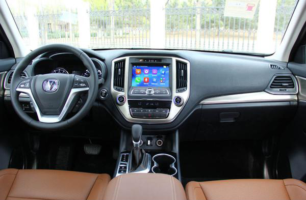 長(zhǎng)安CS95采用大尺寸顯示屏搭配實(shí)體按鍵,兩側(cè)豎向設(shè)置了空調(diào)出風(fēng)口,按鍵排布層次分明,但略顯繁雜。新車還配有三輻式多功能方向盤,門板以及換擋桿處增加了木紋裝飾,同時(shí)提供5座和7座兩種選擇。