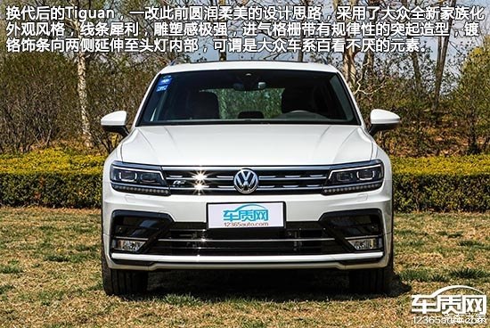 換代后的Tiguan,一改此前圓潤(rùn)柔美的設(shè)計(jì)思路,采用了大眾全新家族化外觀風(fēng)格,線(xiàn)條犀利,雕塑感極強(qiáng),進(jìn)氣格柵帶有規(guī)律性的突起造型,鍍鉻飾條向兩側(cè)延伸至頭燈內(nèi)部,可謂是大眾車(chē)系百看不厭的元素。進(jìn)口版本提供了國(guó)產(chǎn)后見(jiàn)不到的R-Line套件,亮黑色飾板與倒梯形設(shè)計(jì)頗具原廠改裝氣息,同時(shí)前臉面積也被進(jìn)一步擴(kuò)大,給人中型SUV的既視感。