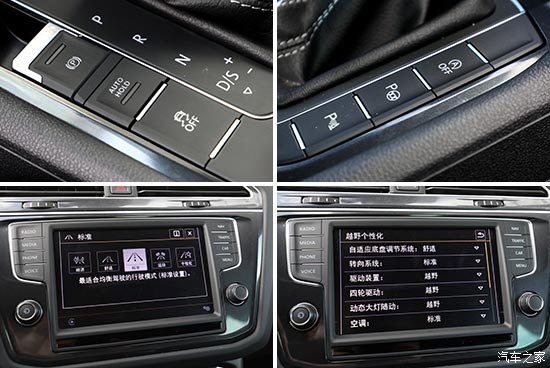 電子手剎和泊車(chē)輔助等功能按鍵移至擋把周?chē)?,使用非常順手且布局緊湊。然而亮點(diǎn)在于后方的路況及駕駛模式選擇旋鈕,前者分為雪地、公路、越野和越野個(gè)性化四種模式,雖然樣式不同,不過(guò)功能和此前的OFF ROAD非常相似,遇到非鋪裝路可直接切換至該模式,剩下的由其自動(dòng)完成,同時(shí)顯示屏中還可反饋車(chē)輛信息。而“越野個(gè)性化”模式卻是首次出現(xiàn),顧名思義可自行設(shè)定轉(zhuǎn)向、驅(qū)動(dòng)裝置及空調(diào)等工作狀態(tài)。