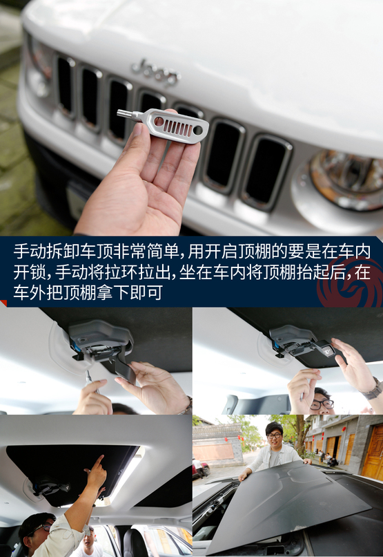 敞篷版車型將普通車型的天窗玻璃全部換成了可拆卸的頂棚,拆卸過程十分方便,即使是女性車主也能輕松拆卸。而且最重要的一點是這個頂棚不只是樣子貨,平時放在車頂時,車內(nèi)可進行操作,把它變成一個電動天窗來用,是不是感覺特高端?