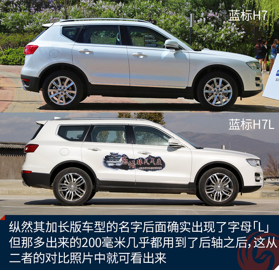 提到加長(zhǎng),我腦子中的第一反應(yīng)是軸距加長(zhǎng)幾十甚至上百毫米,然而,哈弗藍(lán)標(biāo)H7L并不是這樣??v然其加長(zhǎng)版車型的名字后面確實(shí)出現(xiàn)了字母「L」,但那多出來(lái)的200毫米幾乎都用到了后軸之后,這從二者的對(duì)比照片中就可看出來(lái)。