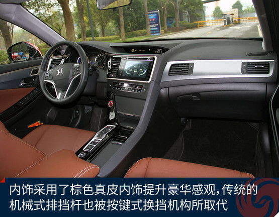 車內(nèi)采用了新的棕色真皮內(nèi)飾,而且還覺得缺了點什么。沒錯!之前的排擋桿不見了,取而代之的是按鍵式換擋機構(gòu),看上去更有科技感,控制區(qū)也更簡潔了。