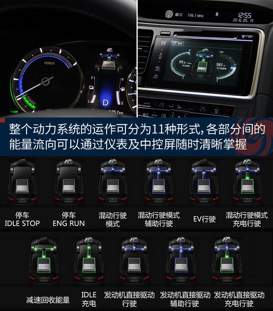 儀表也需要重新設計,左側(cè)的轉(zhuǎn)速表變成了動力顯示表。不過這跟雷克薩斯采用的液晶顯示方式不同,實體儀表只能固定在動力顯示的樣子,愛駕駛的人習慣看的轉(zhuǎn)速表就沒法兼得了。此外,儀表液晶屏和中控大屏都提供了能流量顯示功能,方便駕駛者隨時了解車輛能量的流動情況,也是個突顯逼格的利器。