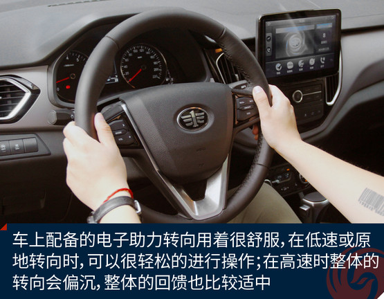 全系車型采用了電動助力轉向,原地或低速狀態(tài)下,方向盤的力度很輕;在高速時,整體的轉向力度則會相應加重,會讓你覺得很穩(wěn)當。對于這個級別車型的轉向表現,森雅R7還算是比較靈活,而且方向盤兩側的虛位不大,對于這個價位的車型來說,能有這樣的表現難能可貴。
