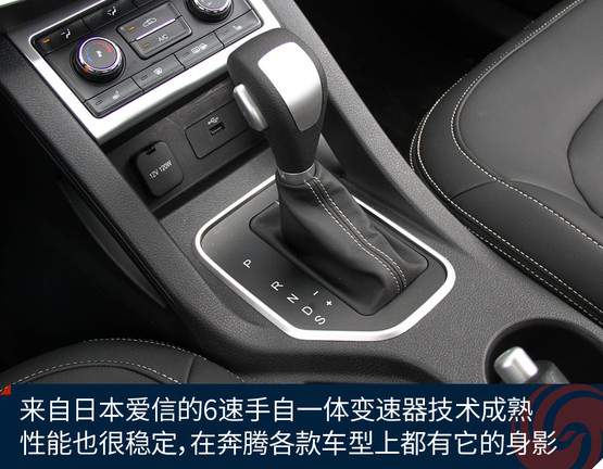 傳動系統(tǒng)匹配的是日本愛信第三代6速手自一體變速器在奔騰各款車型中都有所應用,響應速度、換擋機制等方面的表現(xiàn)都比較成熟、均衡。