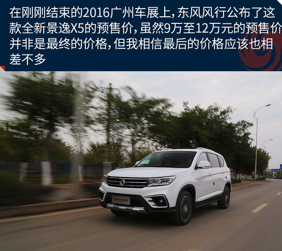 在剛剛結(jié)束的2016廣州車展上,東風(fēng)風(fēng)行公布了這款全新景逸X5的預(yù)售價(jià),雖然9萬(wàn)至12萬(wàn)元的預(yù)售價(jià)并非是最終的價(jià)格,但我相信最后的價(jià)格應(yīng)該也相差不多,最便宜的車型價(jià)格應(yīng)該會(huì)在8萬(wàn)至9萬(wàn)之間,而頂配車型或許不高于12萬(wàn)。