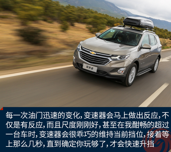日常駕駛時的平順已讓我有些驚訝,而我進一步試著去挑逗油門時,探界者給了我更大的驚喜,每一次油門迅速的變化,變速器會馬上做出反應(yīng),不僅是有反應(yīng),而且尺度剛剛好,甚至在我酣暢的超過一臺車時,變速器會很乖巧的維持當前擋位,接著等上那么幾秒,直到你又安靜地做回美男子之后,才會快速的升到合適的擋位,這種高度的默契感是原來國產(chǎn)的雪佛蘭車上未曾見到的。