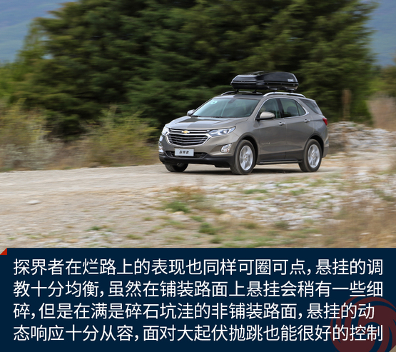 探界者在爛路上的表現(xiàn)也同樣可圈可點,懸掛的調(diào)教十分均衡,雖然在鋪裝路面上懸掛會稍有一些細碎,但是在滿是碎石坑洼的非鋪裝路面,懸掛的動態(tài)響應(yīng)十分從容,而且面對一些大起伏的拋跳也能很好的控制車身的起伏。