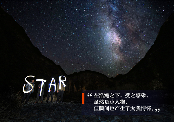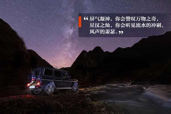 墨分五色,暗與黑之間也相隔甚遠(yuǎn),但你正可以在此時(shí),借助月光,找到一個(gè)好的觀測(cè)和拍攝角度。車這個(gè)伙伴,也在前照燈的照明下,趟過流水,踏上卵石,陪你一起等待即將而來(lái)的精彩。