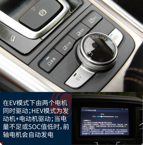 EV的純電模式下車輛由前后兩個(gè)電機(jī)同時(shí)驅(qū)動(dòng);在HEV的混動(dòng)模式下發(fā)動(dòng)機(jī)和雙電機(jī)都會(huì)提供動(dòng)力驅(qū)動(dòng)車輛;當(dāng)電量不足時(shí),前電機(jī)則轉(zhuǎn)變成發(fā)電機(jī),發(fā)動(dòng)機(jī)通過(guò)前電機(jī)為電池充電,同時(shí)也為前輪提供動(dòng)力,此時(shí)車輛由發(fā)動(dòng)機(jī)和后電機(jī)同時(shí)驅(qū)動(dòng)。