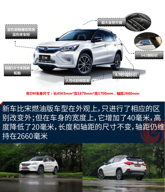 ????????外觀方面,宋DM與燃油版車型基本保持一致,其延續(xù)了X形的前臉造型設(shè)計(jì),整個(gè)前臉時(shí)尚、運(yùn)動(dòng)。而在一些細(xì)節(jié)上,它與唐100一樣,都有新能源車型專屬的特征,車身D柱處還標(biāo)有比亞迪“542”標(biāo)識(shí),并在車尾部標(biāo)有“4.9s”標(biāo)識(shí),強(qiáng)調(diào)了該車型的動(dòng)力系統(tǒng)較為強(qiáng)大。車身尺寸方面,宋DM車型的長(zhǎng)寬高分別為4565×1870×1700毫米,軸距為2660毫米。