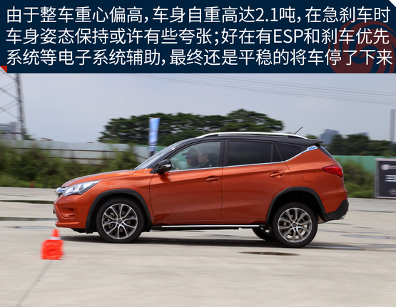 ????????不能否認(rèn),新車整車重心偏高,車身自重高達(dá)2.1噸,急剎車時(shí)車身姿態(tài)保持或許有些夸張;好在有有ESP車身電子穩(wěn)定系統(tǒng)和BOS剎車優(yōu)先系統(tǒng)等電子系統(tǒng)輔助,讓車輛在一個(gè)較短的剎車距離平穩(wěn)的停了下來(lái)。當(dāng)然,剎車時(shí)巨大的慣性,會(huì)讓人不好受,好在宋DM將左腳踏板位置設(shè)置成軟性材質(zhì),急剎時(shí)右腳能夠得到有效的緩沖倒是讓我感到驚喜。