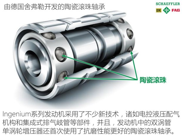 ????除此以外,這款發(fā)動(dòng)機(jī)還配備了當(dāng)前的主流技術(shù),包括頂置直噴、進(jìn)氣和排氣的VVT可變正時(shí)系統(tǒng),集成式排氣歧管以及滾子搖臂氣門驅(qū)動(dòng)結(jié)構(gòu)。帶陶瓷滾珠軸承的增壓器來自德國舍弗勒,由于陶瓷材料特性,理論上可以在結(jié)構(gòu)方面解決增壓器因長時(shí)間使用后軸承磨損,進(jìn)而導(dǎo)致的機(jī)油消耗問題。