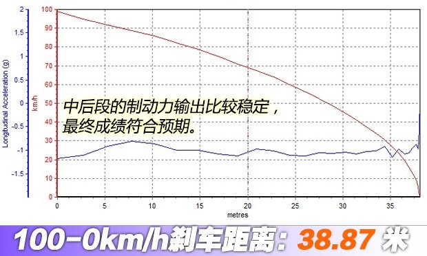 ????全力制動(dòng)時(shí)車身有點(diǎn)頭的現(xiàn)象,但車身總體保持穩(wěn)定,最終成績?yōu)?8.87米,表現(xiàn)符合預(yù)期。這個(gè)成績?cè)谄囍业脑u(píng)價(jià)體系中,也屬于優(yōu)秀水平。