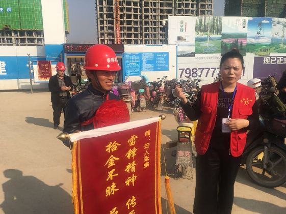 11月9日上午,市民符女士與朋友一起來到天明城名仕公館項目部,向拾到其錢包的鄲城小伙張鵬表示感謝。