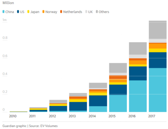 經(jīng)證實(shí),至2017年11月底,全球電動(dòng)汽車保有量已超過300萬(wàn)輛。2017年前11個(gè)月電動(dòng)汽車銷量超過100萬(wàn)。