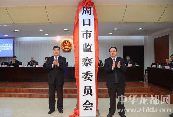 劉繼標(biāo)、劉國連為新成立的周口市監(jiān)察委員會(huì)揭牌,標(biāo)志著我市深化國家監(jiān)察體制改革試點(diǎn)工作邁出了關(guān)鍵性一步,標(biāo)志著肩負(fù)全市公職人員監(jiān)察職責(zé)的新部門——周口市監(jiān)察委員會(huì)正式成立。