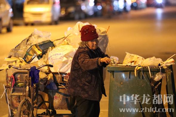 如果天氣允許,每天傍晚6點(diǎn)半到深夜11點(diǎn)之間,在淮陽縣西關(guān)弦歌西路和新民南路交叉口附近,你都會(huì)見到一位身材矮小、騎著或推著一輛破舊三輪、上年紀(jì)、一只眼睛失明的老奶奶,在一個(gè)又一個(gè)垃圾桶前停下,翻揀廢舊紙箱、塑料瓶。把揀拾的廢品放上三輪車,老人還不忘用隨身帶的鐵锨清理好凌亂的垃圾,再到下一個(gè)垃圾桶邊繼續(xù)翻揀。