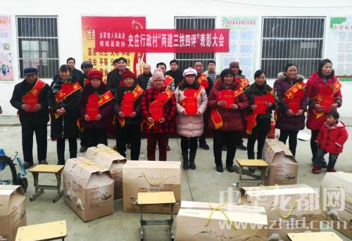 中華龍都網(wǎng)訊(周口報(bào)業(yè)全媒體記者 徐松 通訊員 閆紅旗)1月21日上午,鄲城縣政協(xié)和汲冢鎮(zhèn)黨委、政府,在縣政協(xié)駐村幫扶點(diǎn)史莊村召開(kāi)“兩建三扶四評(píng)”表彰大會(huì),為評(píng)出的16戶(hù)孝老愛(ài)親戶(hù)、脫貧致富戶(hù)、誠(chéng)信守法戶(hù)、清潔衛(wèi)生戶(hù)頒獎(jiǎng)。