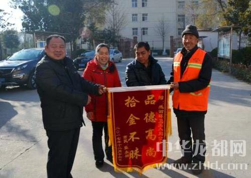 “失主丟了東西肯定很著急?!眲⒐椧贿呉贿叺龋诤L中一等就是3個小時。終于,貌似失主的張先生和妻子行色匆忙的來到皂角樹廣場,劉公綏看到兩人比較著急,便主動上前詢問。經(jīng)詢問后確定他們就是失主,當即物歸原主。為表達謝意,三天后,失主張先生把一面寫有“拾金不昧,品德高尚”的錦旗親手送到劉公綏手上。