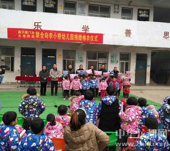 1月22日下午,市地稅局駐村工作隊聯(lián)合愛心企業(yè)到太康縣王集鄉(xiāng)李小橋幼兒園開展“送溫暖、獻愛心”棉衣捐贈活動。當天,共有100多名留守兒童領(lǐng)到了御寒棉衣。記者馬治衛(wèi)通訊員蘇童攝