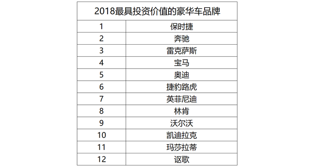 2018年經(jīng)銷商值得投入的品牌推薦保時捷、奔馳、雷克薩斯;具有增長潛力的品牌推薦寶馬、奧迪、捷豹路虎;謹慎關(guān)注的品牌有瑪莎拉蒂、謳歌。