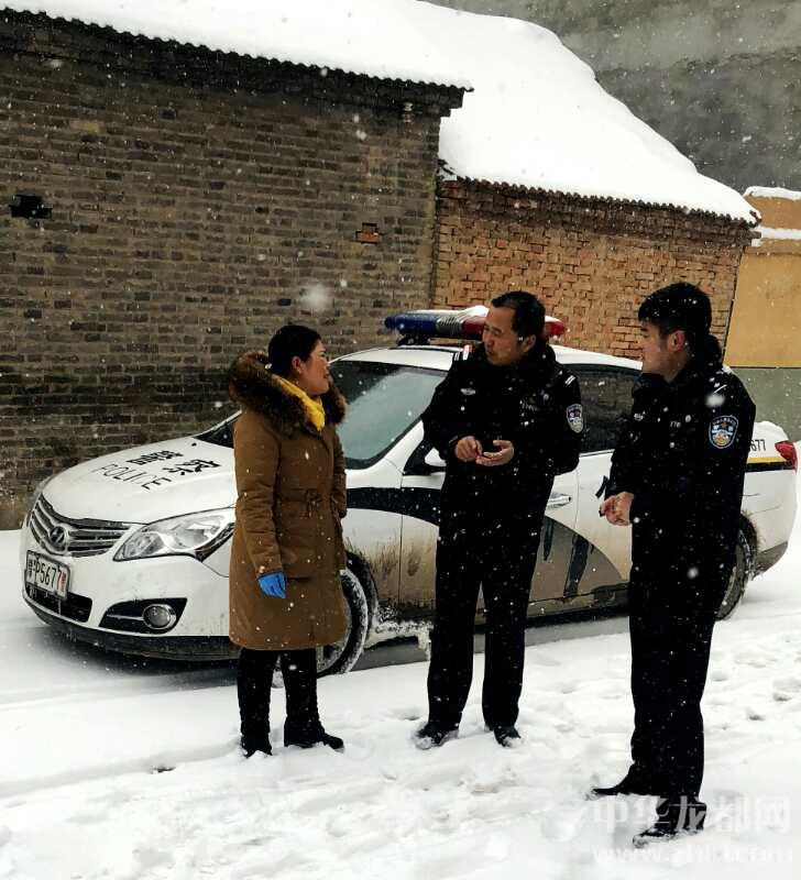 怎么辦?24日傍晚,大雪普降,趙鵬飛、呂韶輝倆人商定,明天決定踏雪一試。在海子涯村,兩人在入戶走訪,向群眾宣傳冬季取暖安全注意事項,叮嚀沿途車主將雪天交通安全銘記在心,嚴寒中為群眾送去溫暖和平安。到達孫明、孫方兩家,兩人已成了雪人。于是出現(xiàn)了本文開頭的一幕。